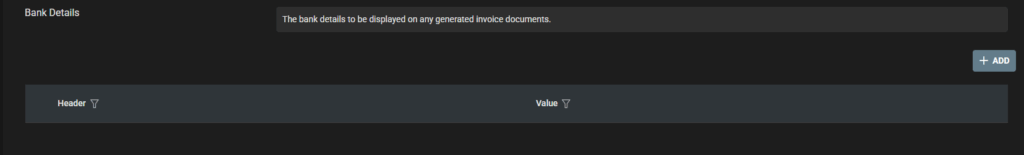 - Complete Invoicing/Billing Details/Bank Details for Company