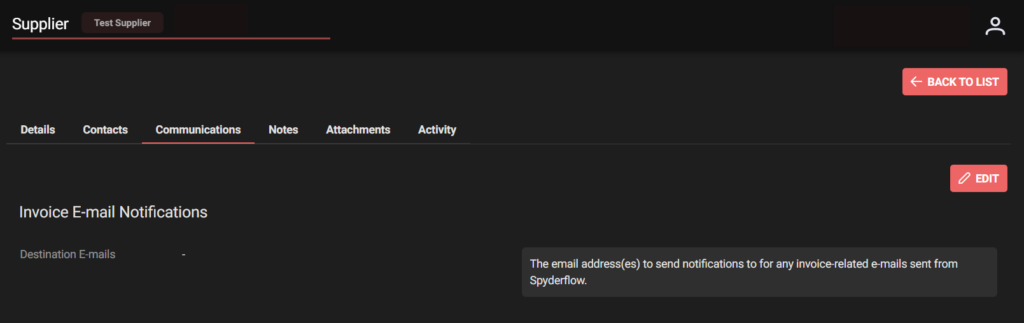 - The email address(es) to send notifications to for any invoice-related e-mails sent from SpyderFlow.