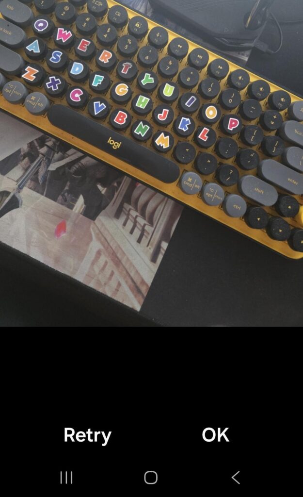 - Options will display at bottom of photo: ‘Retry’ or ‘ok’