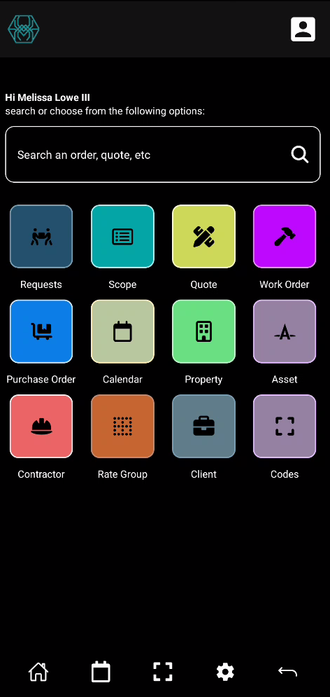 The mobile home screen provides users with a quick and efficient way to see what is happening across all the areas and activities that they are managing with SpyderFlow.