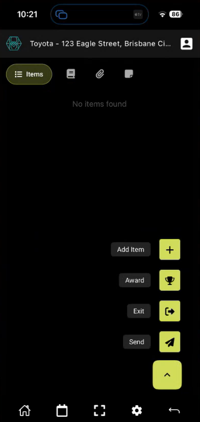Example 1: New screen for Items, Details, Attachments and Notes (Quote area)