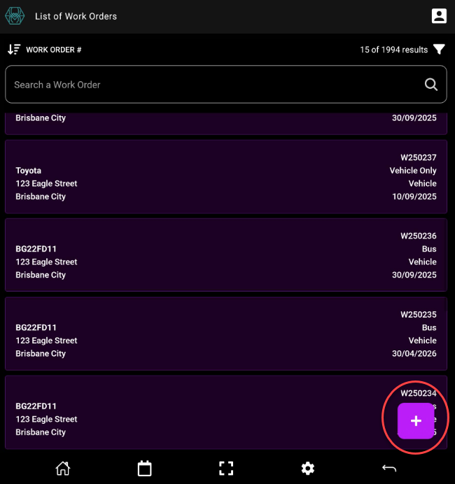 Example 2: List of Work Orders screen with Floating ‘+’ Action Button and improved layout