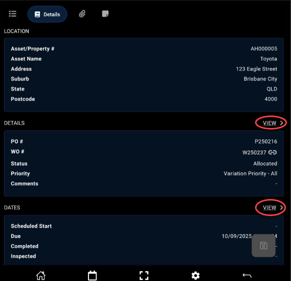 - Each attachment will open into its own data focus page with tabs: Photos, Documents, Details.