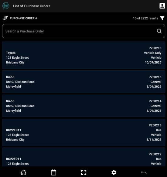Once selected a purchase order from the ‘List of Purchase Orders’ (Tap to Select)