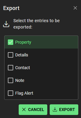 - Select the entries to be exported through pop up window