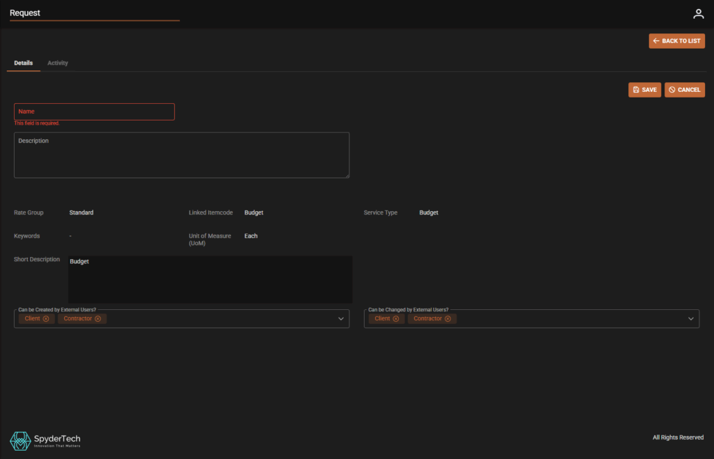 - Can be Changed by External Users? (Do you want your Clients or Contractors to change Items?) – Configure in Fields if want to give options of Clients or Contractors in the dropdown