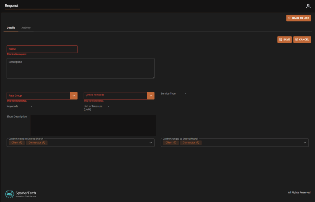 Requests can be created inside Rate Groups linked to Items see related – Rates | Rate Groups | New Items and Linked Requests
