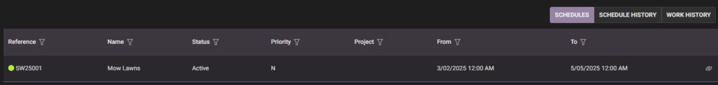 Once a schedule is active it will start to produce work orders.