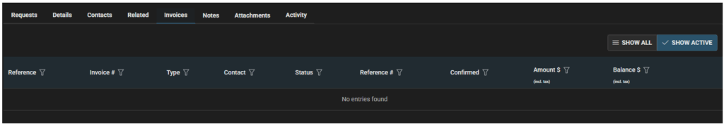 Associated Invoices are linked to the Service Request in the Invoices Tab.