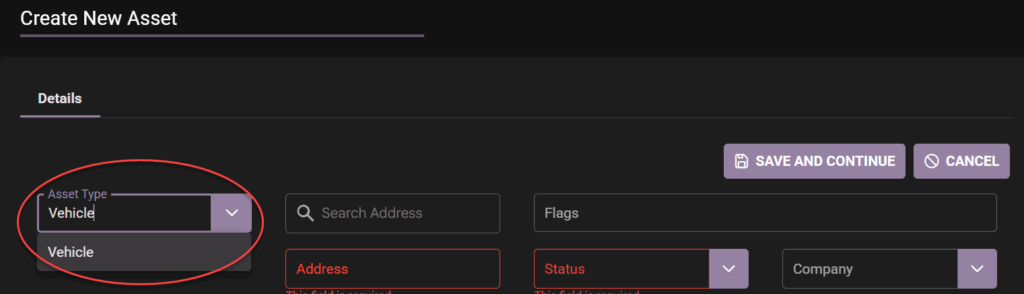 - This is then the list of field options you want to display when you are filling out asset details and click on the “Type” field dropdown.