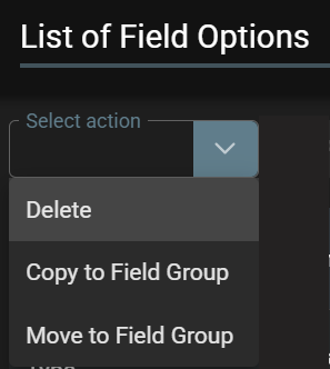 - A field option once linked to a field group cannot be changed to another field group unless through a Select Action (Move or Copy). Clicking Edit in the field Option will not work.