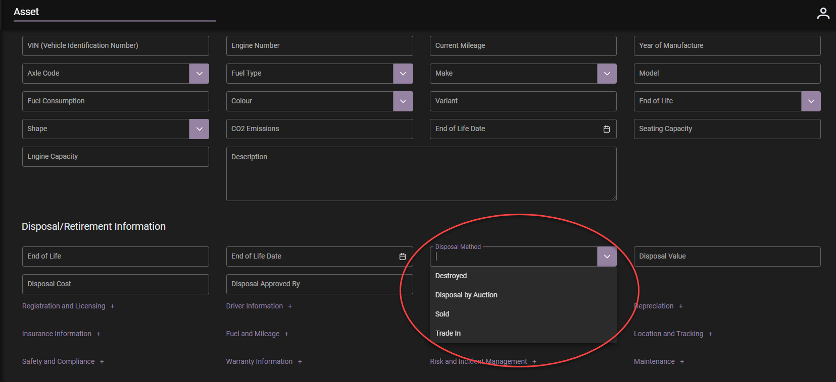 Below see ‘Sold’ is added to the drop down for Asset Disposal Field Option.