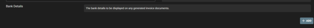 Bank Name – The default bank name which is displayed on any generated invoice documents).
