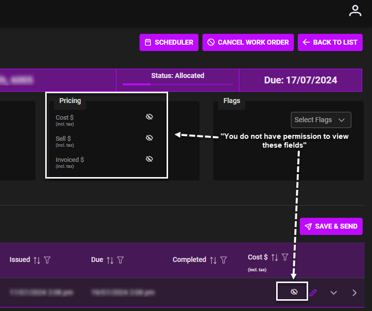 Pricing hidden with: Service Requests, Scopes, Quotes, Work and Purchase Orders.