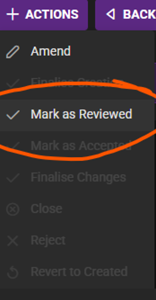- Click +ACTIONS > Select Mark as Reviewed