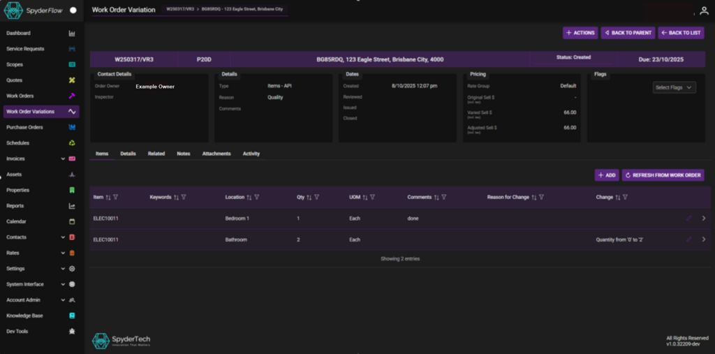 - When enabled for a work order priority, users can no longer edit items directly—instead, they submit a variation request that moves through an approval workflow.